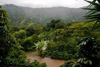 News on the grapevine in San Juan was that some gringo doctors were in town and my curiosity was piqued as various neighbouring families walked past our house down to the dry bed river and up the slope to one of the many Evangelical churches in these parts. This coupled with my usual dose of hypochondria, (I had a red lesion on my cheek and after all of the intense sun we had been having I wanted to put my mind at rest), was good reason to go to the Shalom Evangelist church after lunch and see if I could talk to one of the doctors there. It had started to rain heavily mid-morning as storm Alex was still persisting (although definitely on the wane), so I had to dodge puddles and streams and go the long way through the town as the normally dry river bed was a treacherous muddy torrent once again.